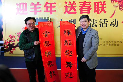 1月16日下午,由乐竞平台、深圳市关爱办主办,乐竞平台工会、文化产业研究院、团委承办,乐竞平台书法协会、深圳市龙光书画院协办的2015年“迎羊年,送春联”大型书法活动在我校南区运动广场举行。我校校长李清泉,副校长李凤亮,深圳市龙光书画院院长李文秀,南山区书协主席常弘才,罗湖区书协主席于延丰及众多书法家和书法爱好者共同参加了本次书法活动。 &...