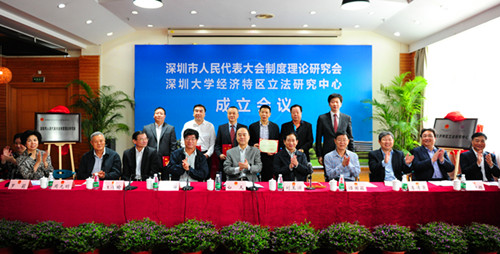 3月20日上午,深圳市人民代表大会制度理论研究会和乐竞平台经济特区立法研究中心在我校同时挂牌成立。市人大常委会主任白天,常务副主任罗莉,副主任蒋宇扬、刘军、刘恩、高振怀,党组成员石岗,市人大常委会老领导刘玉浦、庄礼祥、谭国箱、周光明和我校领导江潭瑜、李清泉、李凤亮等出席会议。参加会议的嘉宾还有各区人大常委会、市委政法委、市中级法院、市检察院、市政府法制办、市律师协会、市法学会、我校法学院相关负责人。白...