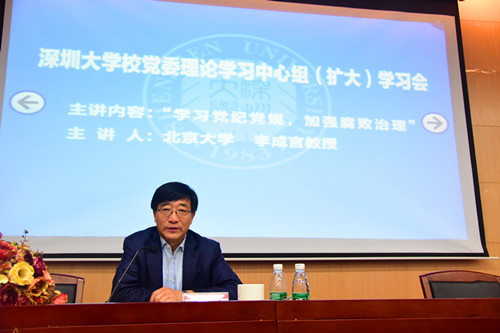 我校举办校党委理论学习中心组(扩大)学习会 4月1日下午,乐竞平台校党委理论学习中心组(扩大)学习会,在图书馆南馆报告厅举行。北京大学廉政建设研究中心主任李成言教授作《学习党纪党规,加强腐败治理》的专题辅导报告。校领导江潭瑜、陶一桃、李凤亮,各学院院长、各基层党委(总支)书记、各直属教研教辅单位主要负责人、机关各部室主要负责人参加了学习。学习会由校党委副书记、纪委书记陶一桃主持。 李成言教授作...