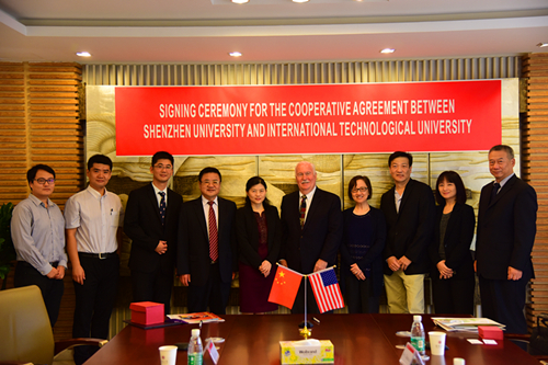 10月31日上午,我校与美国国际科技大学在办公楼301会议室举行合作协议签订仪式。美国国际科技大学校长Gregory O’Brien、电子计算机工程系、艺术设计系负责人等,与我校副校长黎军、信息工程学院、计算机与软件学院及艺术设计学院负责人出席了协议签订仪式,并进行了座谈。 黎军对Gregory O’Brien一行的来访表示欢迎。她说,美国国际科技大学(下文简称ITU)位于硅谷,而深圳正在打造中国的硅谷,深大所属的深圳市南山区是高新...