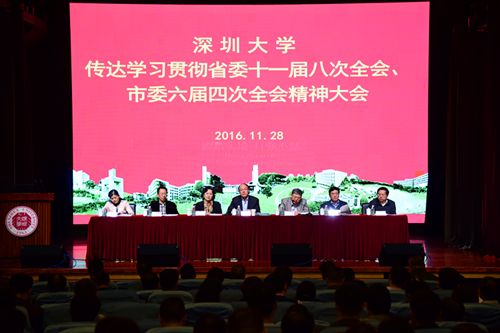 11月28日下午,我校在国际会议厅召开大会,传达学习贯彻省委十一届八次全会、市委六届四次全会精神。校党委书记刘洪一、校长李清泉等全体在家校领导,全体中层干部,直属的教研教学教辅单位的负责人,学院的系主任、专业负责人、教学秘书,校审核评估小组的成员以及师范学院教务的相关工作人员参加会议。会议由李清泉主持。 刘洪一首先传达了省委十一届八次全会主要精神。11月20日至21日,广东省委于广州召开了十一届八次全会。...