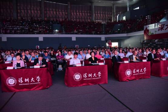 9月15日下午,我校在西丽校区体育馆隆重举行医学部十周年庆典暨2018级新生开学典礼。深圳市副市长吴以环,中国科学院院士李家洋、曹晓风、陈化兰,欧洲科学院院士汪兆琦,校党委书记刘洪一,校长李清泉,副校长徐晨、李永华,中山大学副校长、南方医科大学副校长黎孟枫,暨南大学副校长叶文才,广州医科大学副校长刘金保,北京大学医学部主任助理朱树梅,大连医科大学副校长管又飞,广东医科大学副校长丁元林,《中国科学:生命科学》副主编董尔丹,《中国科学》杂志社编委会秘书长彭斌,德国耶拿大学副校长Thorsten和美国乔治敦大学、印度德里大学教授Kumar,市卫生和计划生育委员会副主任孙美华,市教育局副巡视员赖群阳,市科创委、罗湖区、南山区有关部门负责人和我校各职能部门、各附属医院领导及医学部全体师生等参加庆典。庆典活动由医学部党委书记柴金龙主持。