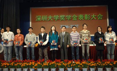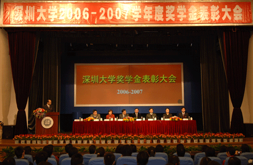 12月25日下午,乐竞平台2006-2007学年度奖学金表彰大会在国际会议厅隆重举行。校党委书记江潭瑜、副书记陶士平和南太集团慈善基金会秘书长朱素兰;永亨银行(中国)有限公司执行董事、行长陈宏略;杜邦(中国)集团公司人力资源部经理罗柱;香港恒生银行深圳南海大道支行行长李晓佳,组织部、学生工作处以及各学院(部)主管学生工作领导、辅导员、班主任代表、学生代表共三百多人出席大会。