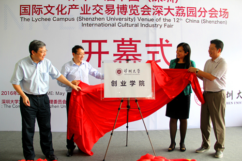 5月12日下午,第十二届中国(深圳)国际文化产业博览交易会(简称“文博会”)深大荔园分会场开幕式在我校科技楼一楼举行。共青团深圳市委书记蔡颖,南山区人民政府区长王强,海岸集团董事长李奕标,江苏银行深圳分行行长李敏和我校校长李清泉、副校长李凤亮,各学院、部门相关负责人,各大新闻媒体以及广大师生共同参加了开幕式。开幕式由李凤亮主持。