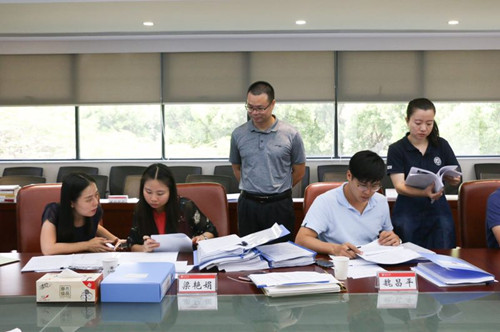 在材料审核环节,测评专家按照《广东省高校文明校园测评细则》中思想道德建设、领导班子建设、教师队伍建设、校园文化建设、优美环境建设、活动阵地建设6项一级测评指标、31项二级测评指标、142项测评标准,对我校相关材料进行了逐一审核评分。通过前期工作部署、各单位精心准备,我校材料充分,除了细则要求必要材料外,还展示了各项特色指标、出版书籍、制度汇编、工作机制等辅助材料。