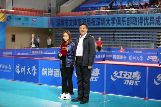 比赛间隙,范志刚、陈梦分别为吉他社、戏曲社代表、拉拉队代表和主持人代表颁奖,以表彰他们为我校乒超俱乐部做出的突出贡献。