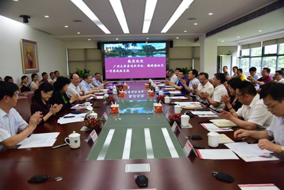 6月25日下午,广州大学领导班子成员:党委书记屈哨兵,党委副书记、校长魏明海,党委副书记张强,副校长于欣伟、傅继阳、周云、孙延明、张其学、郭兴蓬,纪委书记刘晋生,及学校中层领导干部来访我校。我校领导刘洪一、李清泉、陶一桃、范志刚、黎军、王晖、李永华,党政办、党委组织部、统战部、党委宣传部、纪委、校团委、教务部、科学技术部、学生部、国际交流合作部、人力资源部、计划财务部、后勤部、安全保卫部、离退休办公室、图书馆、信息中心、招投标管理中心、实验与设备部、研究生院等部门主要负责人接待了来宾一行。