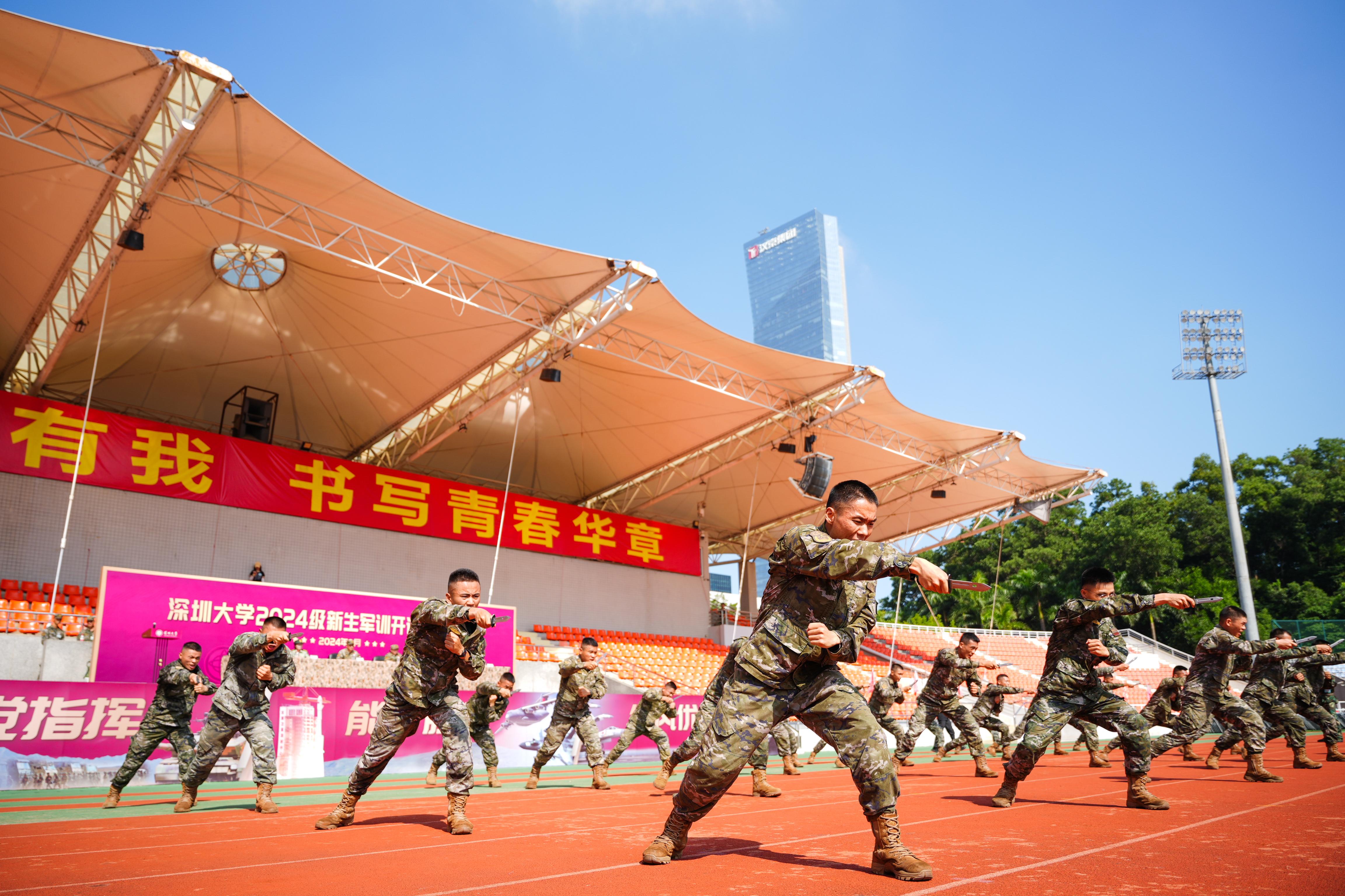 今年,乐竞平台共有6730名新生在粤海校区、丽湖校区同时开展军训。军训编制分为三个团九个营108个连:其中一团2180人,在粤海校区田径场组训;二团2325人,在南区运动场组训;三团2225人,在丽湖校区至快体育场组训。各军训团政委、副政委及连指导员由我校老师担任,武警深圳第一支队派出优秀教官团队负责承担本次军事技能训练任务。