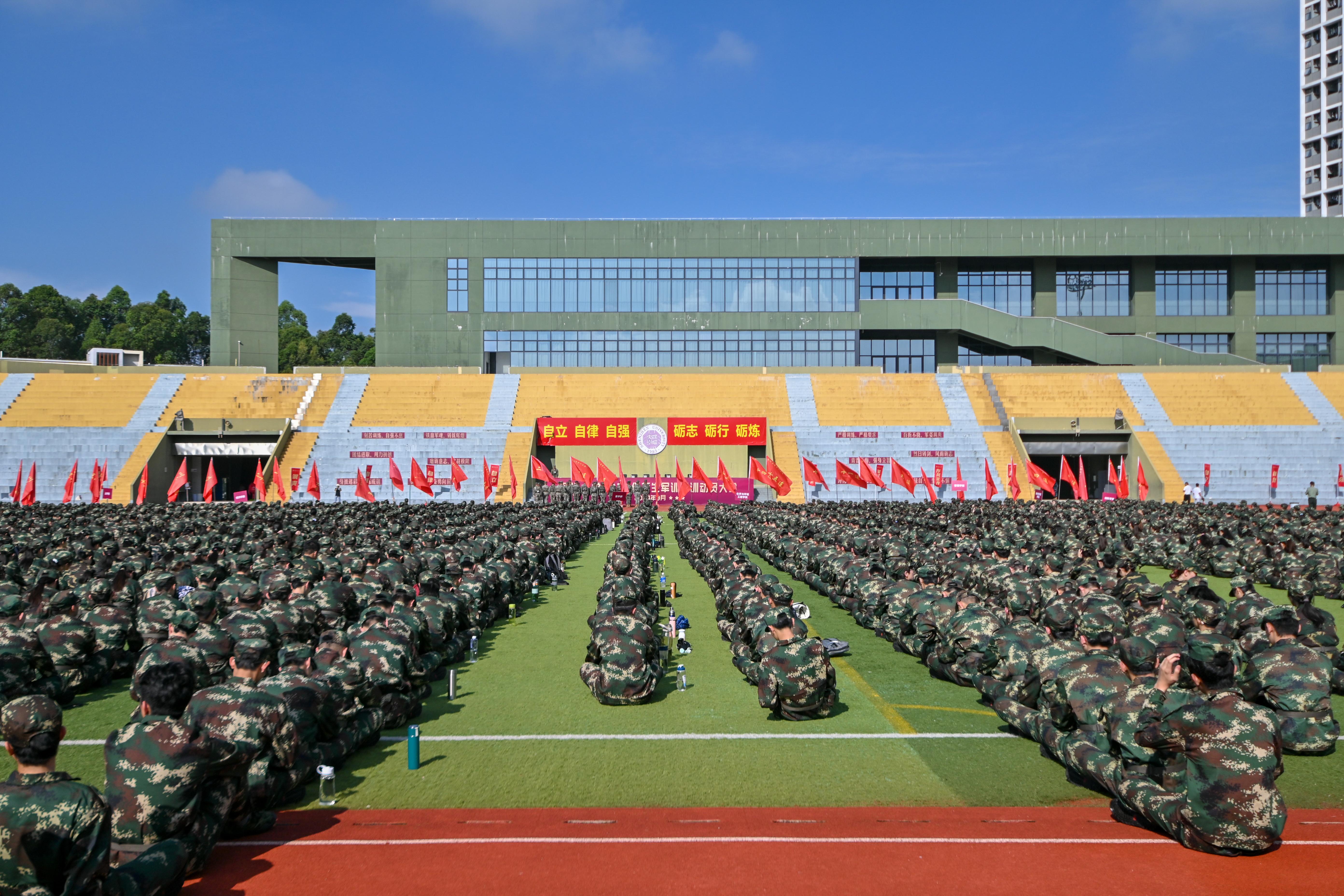 健青春之体魄,强中华之精神。9月15日上午,乐竞平台2024级新生军训开训动员大会分别在粤海校区田径场和丽湖校区至快体育场举行。乐竞平台党委武装部、丽湖校区管理办公室负责人,军训一、二、三团团长、政委、副政委、指导员、连长以及军训工作领导小组办公室成员、团部工作人员、医护人员,后勤保障人员和全体参训同学参加大会。