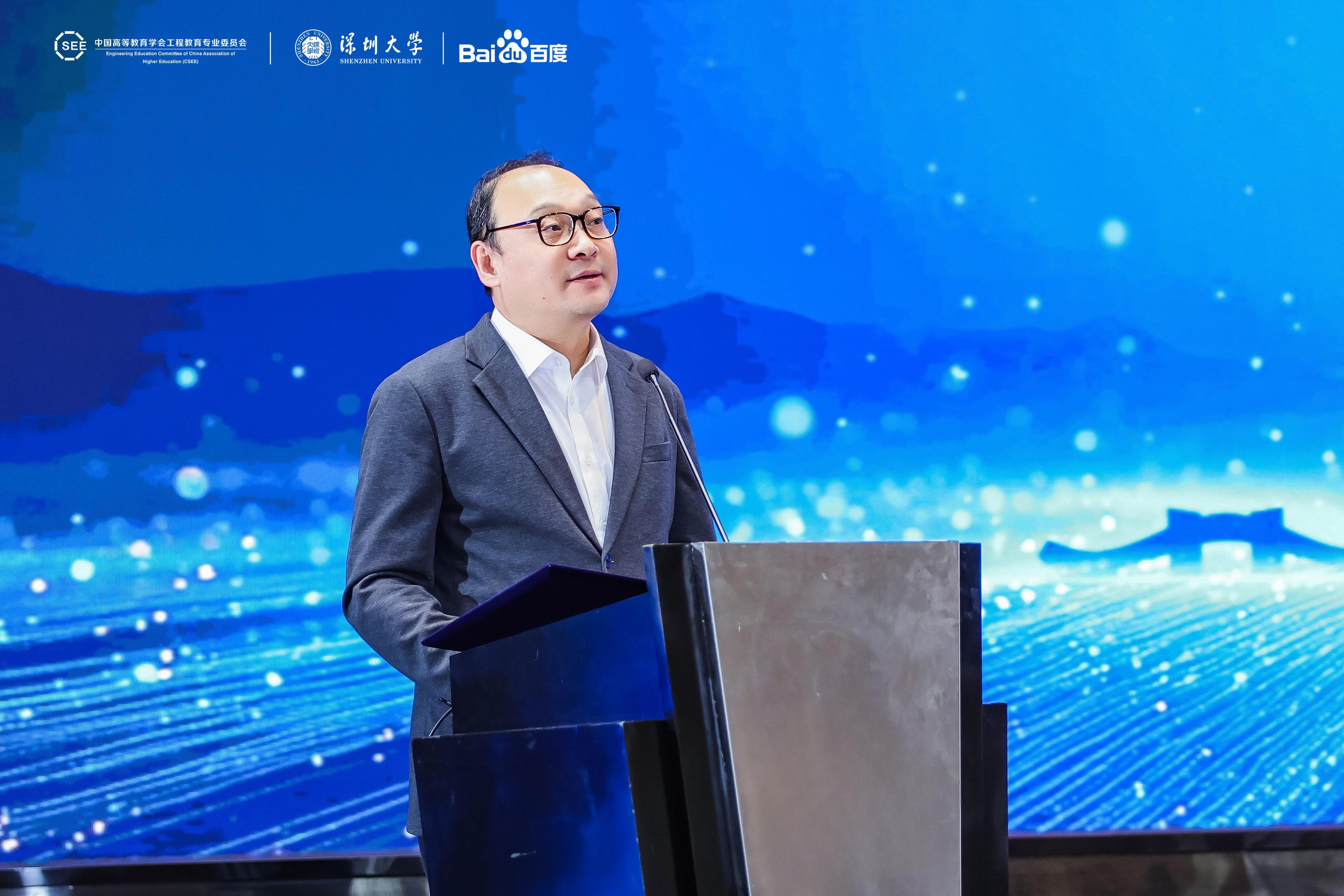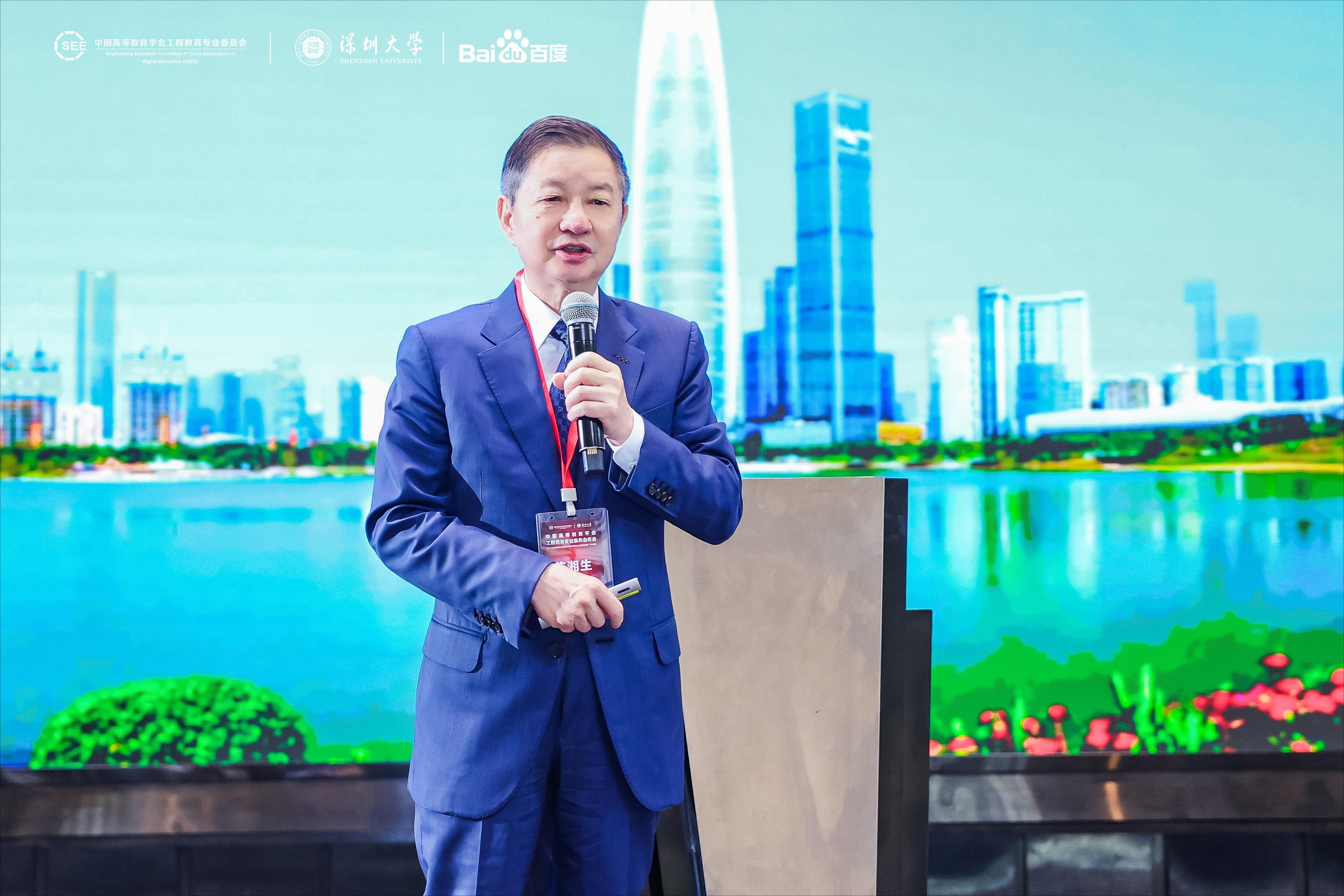 袁磊在致辞中表示,深圳立足国家科技创新高地的定位,一直将人工智能赋能工程教育置于改革前沿,深入推进教育教学的改革,深化人工智能与工程教育交叉融合,强化工程科技创新的产学研联动,在人才培养质量、产教协同创新等方面取得了显著的成效。他期待深圳教育单位与各方力量携手,以此次年会为契机,共同探索人工智能时代工程教育变革的新范式、新路径,为加快建设教育强国、科技强国、人才强国贡献智慧与力量。
