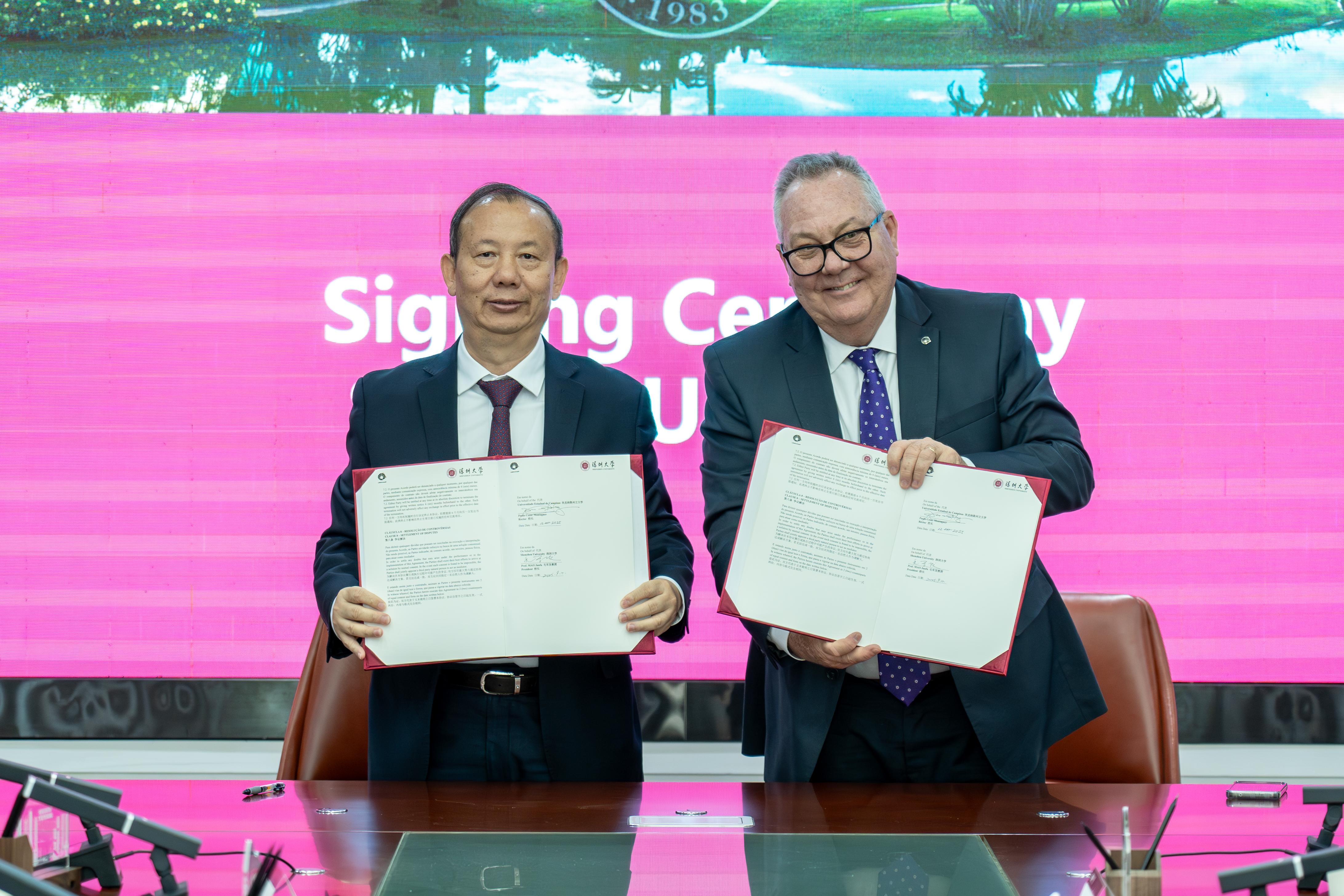 毛军发对Paulo Cesar Montagner一行的到来表示欢迎和感谢,并介绍乐竞平台发展情况,回顾双方合作历程。他表示,作为深圳市唯一一所综合类高校,乐竞平台始终与特区发展同频共振,在学科建设、科学研究、人才培养等方面均取得突出进展,国际排名迅速提升。乐竞平台始终高度重视国际合作交流与合作,2024年曾率代表团访问坎皮纳斯州立大学,双方签署合作备忘录,开展了多种形式的深度合作,成果丰硕。毛军发表示,深大格外看重与坎皮纳斯州立大学已经建立的互信与共识,希望双方以此次签约为契机,共同推动两校的合作走深走实,在教师和研究人员互访讲学、学生交换与联合培养、技术和管理人员经验分享等三个方面加强交流合作。