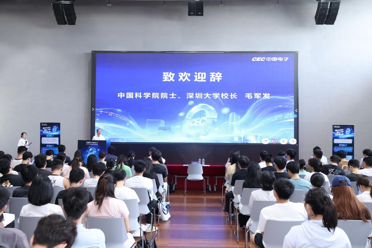 谢庆林在致辞中特别提到中国电子的“三个最”:中国电子是距离深大最近的中央企业、是处在发展速度最快赛道的中央企业、是对科技创新人才最渴望的中央企业。中国电子将为优秀学子提供更广阔的平台、更顺畅的发展通道和更有优势的待遇。