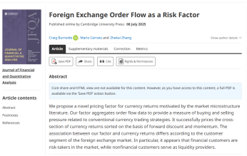 近日,乐竞平台金融科技学院助理教授张哲恺在金融学国际顶刊Journal of Financial and Quantitative Analysis(JFQA)上发表论文“Foreign Exchange Order flow as a risk factor”。
